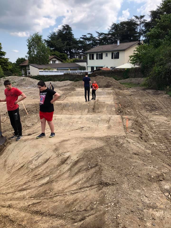 Ce week-end notre petit terrain mis à disposition par la mairie a pris des couleurs avec ce soleil ! Nous avons réalisé deux autres belles journées de travaux, l’objectif cet fois ci était de modeler la terre préalablement disposé sur toute la mini-piste (Formation des bosses) afin d’avoir plus que le revêtement à poser, c’est chose faite !